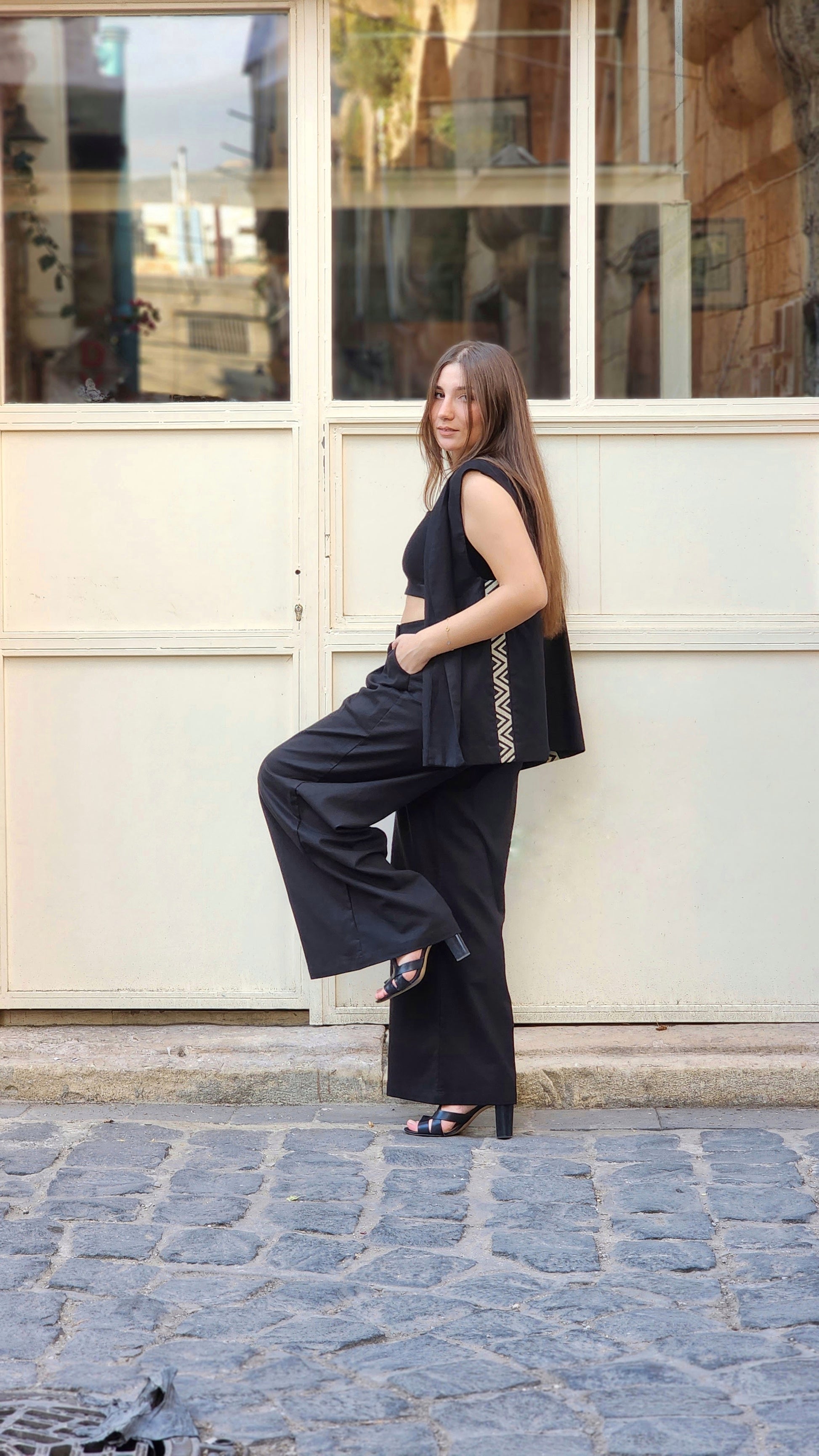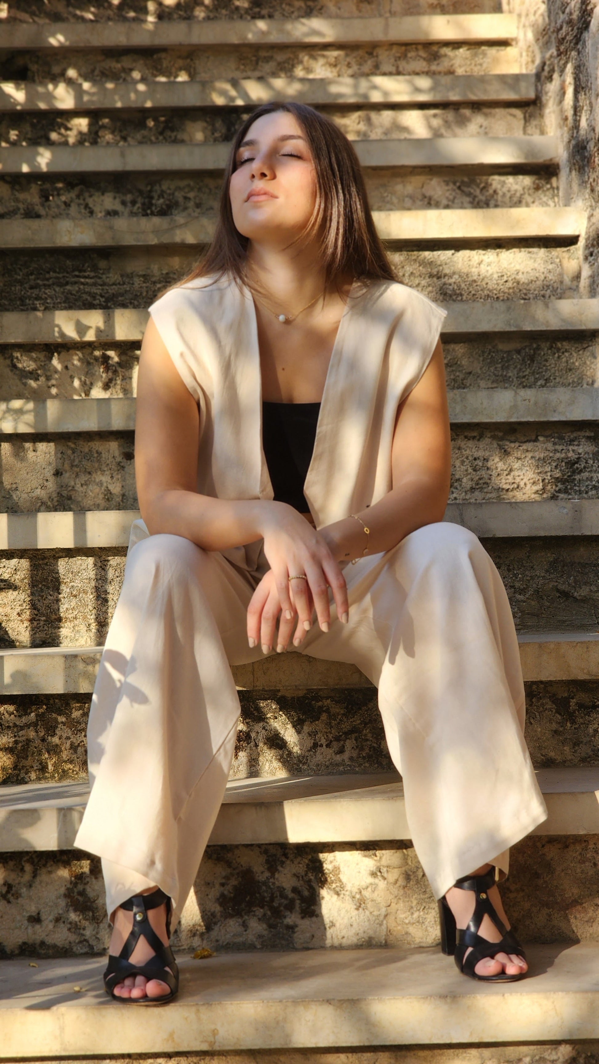Amara linen blend oversize pants crafted for the fashion-conscious seeking a relaxed yet chic look. With a loose, oversize fit, these pants prioritize comfort without sacrificing style. Equipped with both front and back pockets, these pants not only exude a fashionable aesthetic but also offer practicality for storing your essentials.
