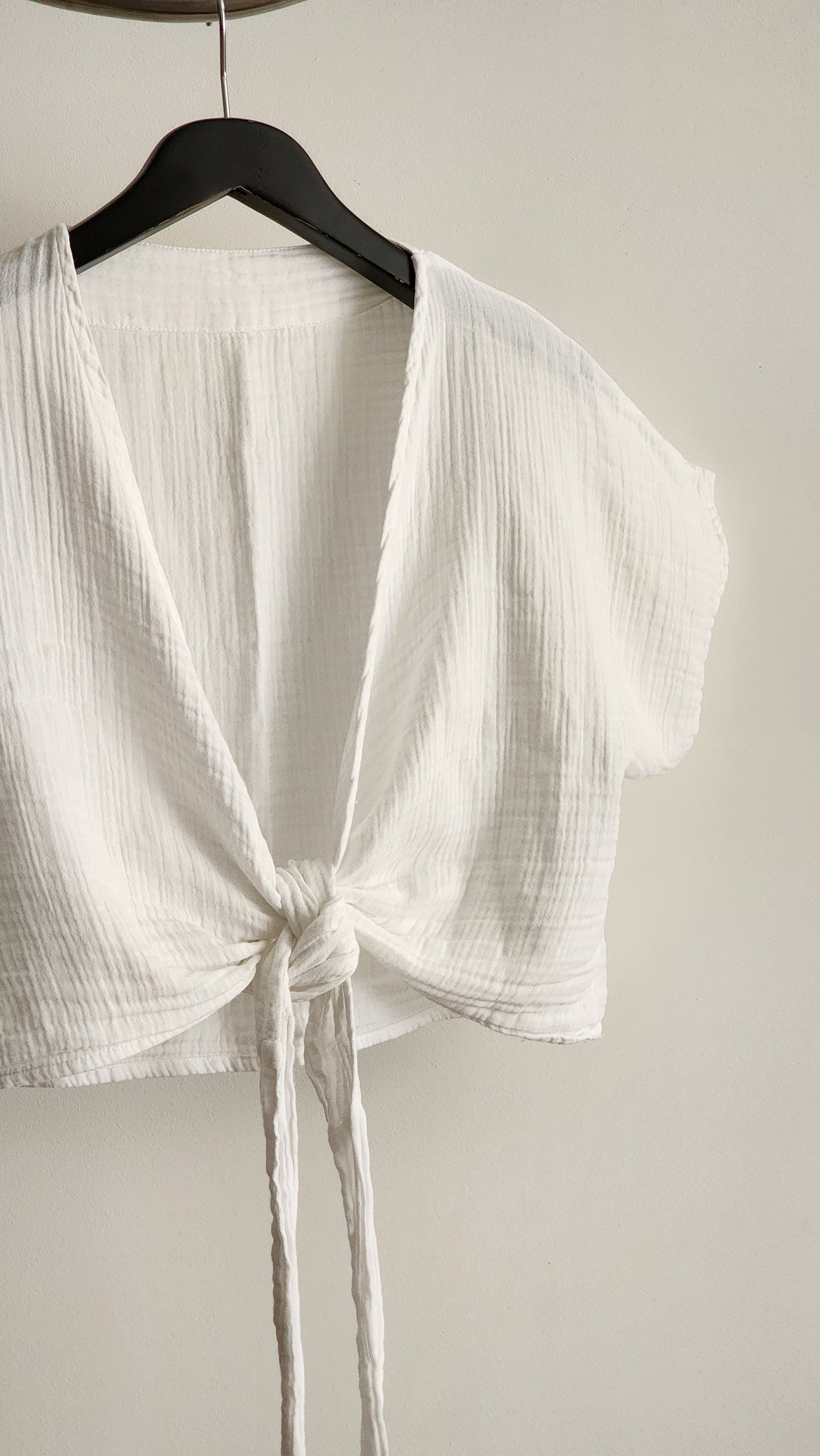 Our white muslin wrap top is the basic essential for your wardrobe. Its timeless design and lightweight, breathable fabric make it a versatile piece that effortlessly elevates your everyday style.