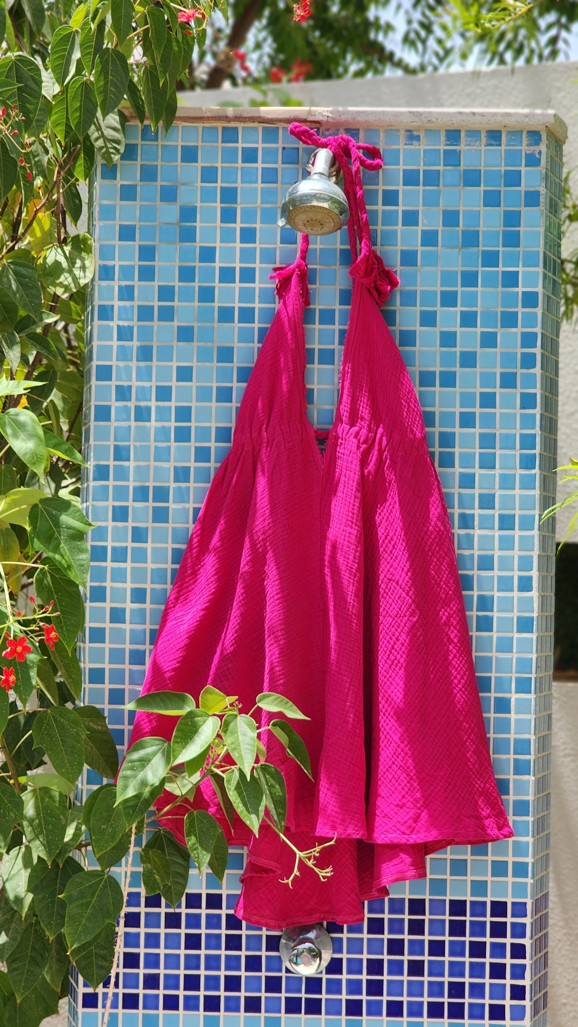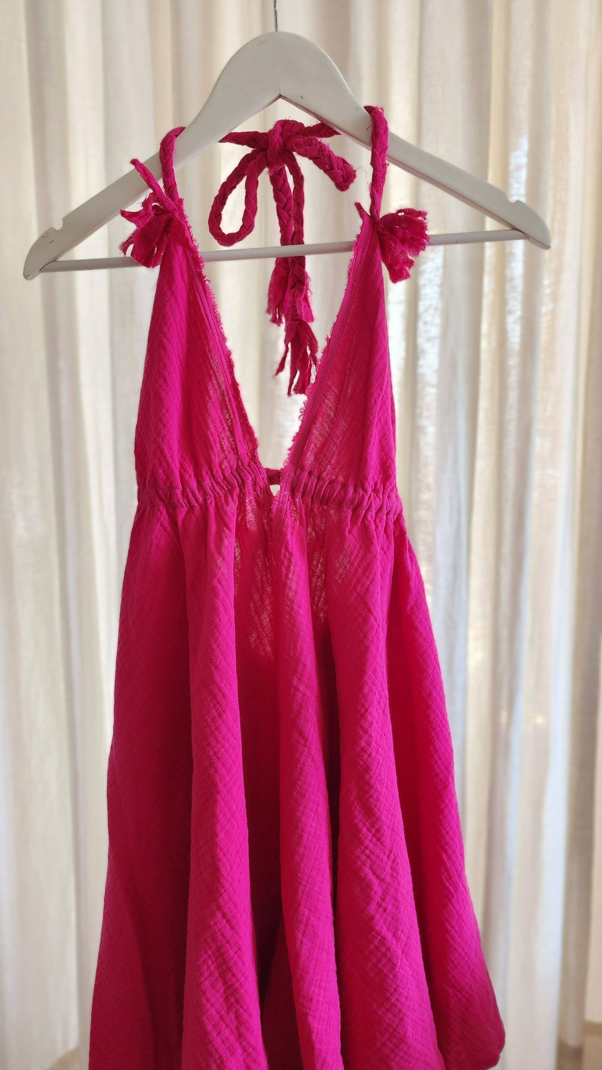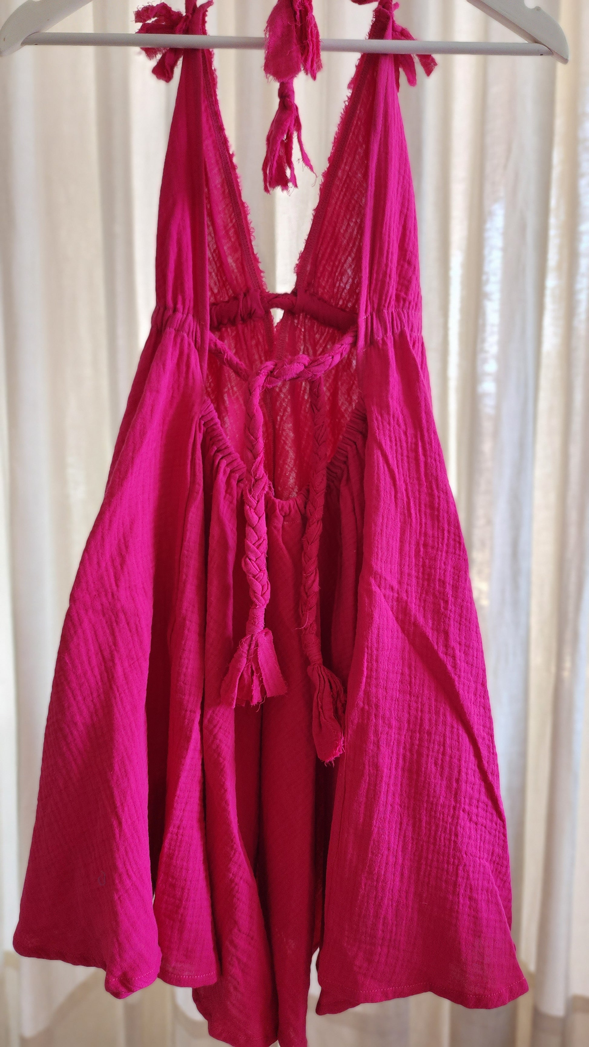 Short A-line Dress, designed for a flattering fit with adjustable braid straps around the waist and neck, ensuring a customized and stylish look.
