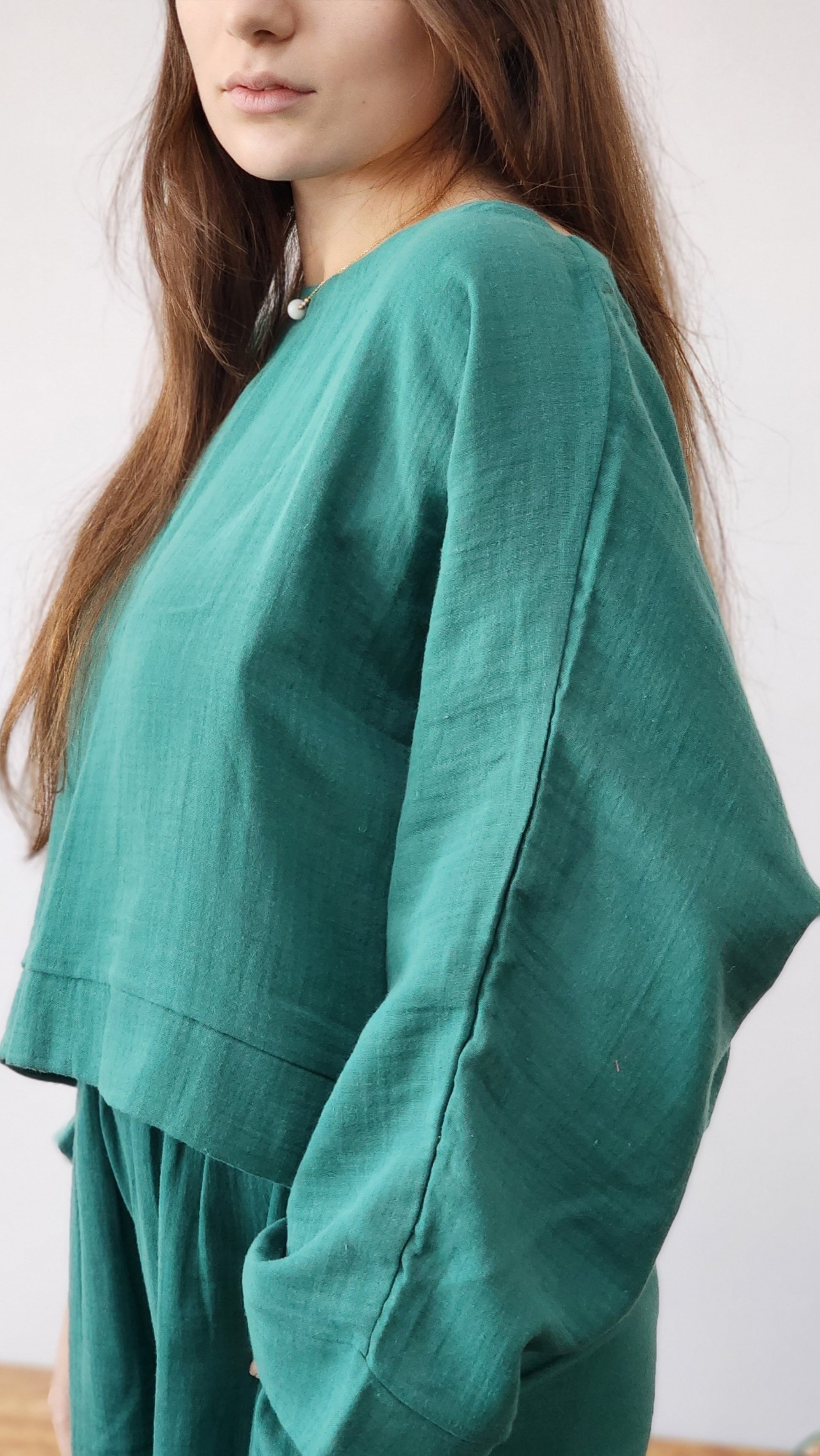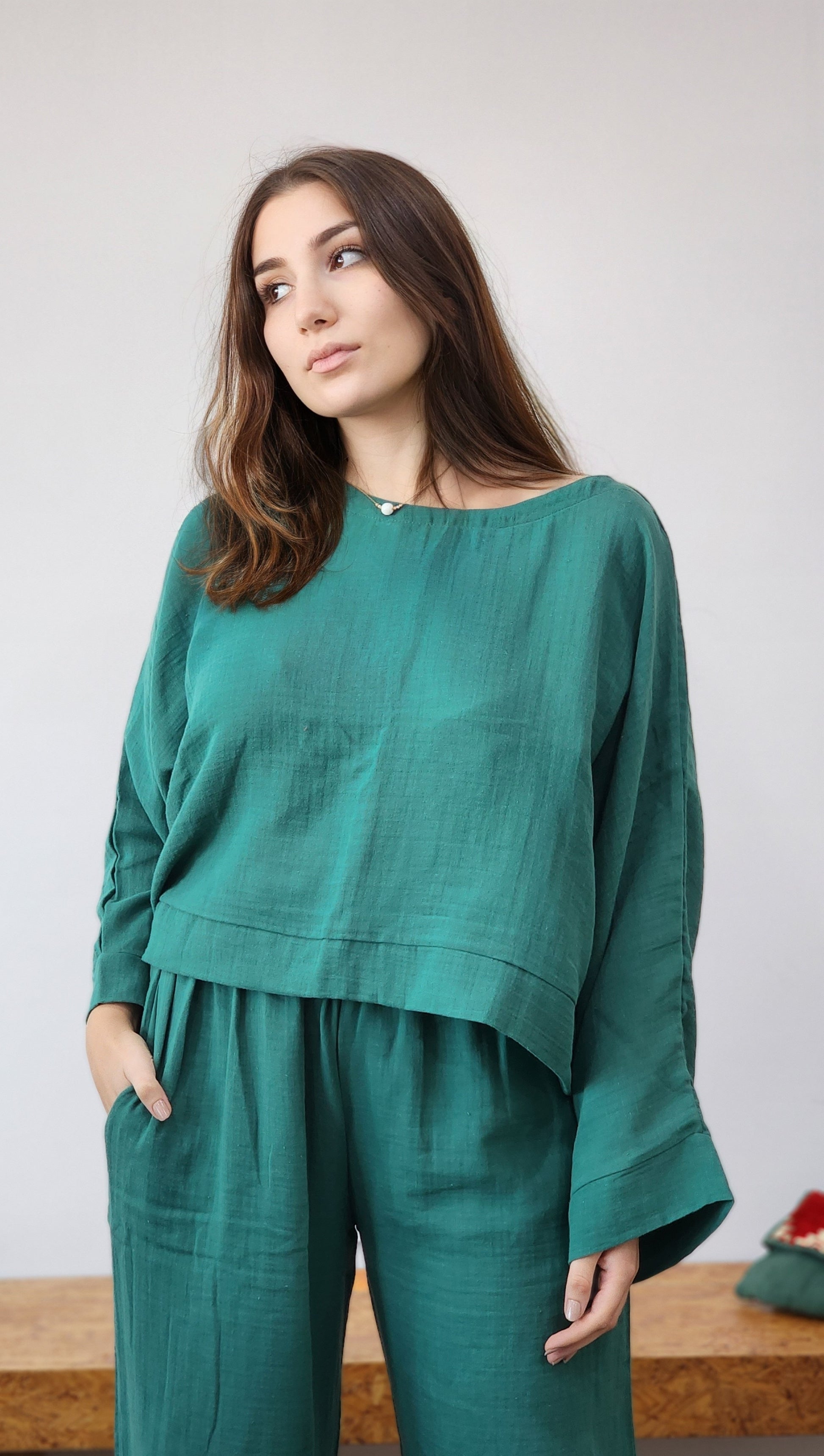 Indulge in ultimate comfort with our Long-Sleeve Wide Top and Free-Size Pants Set. Designed for lounging and everyday wear, this ensemble features a relaxed fit, elastic waistband, and convenient pockets.