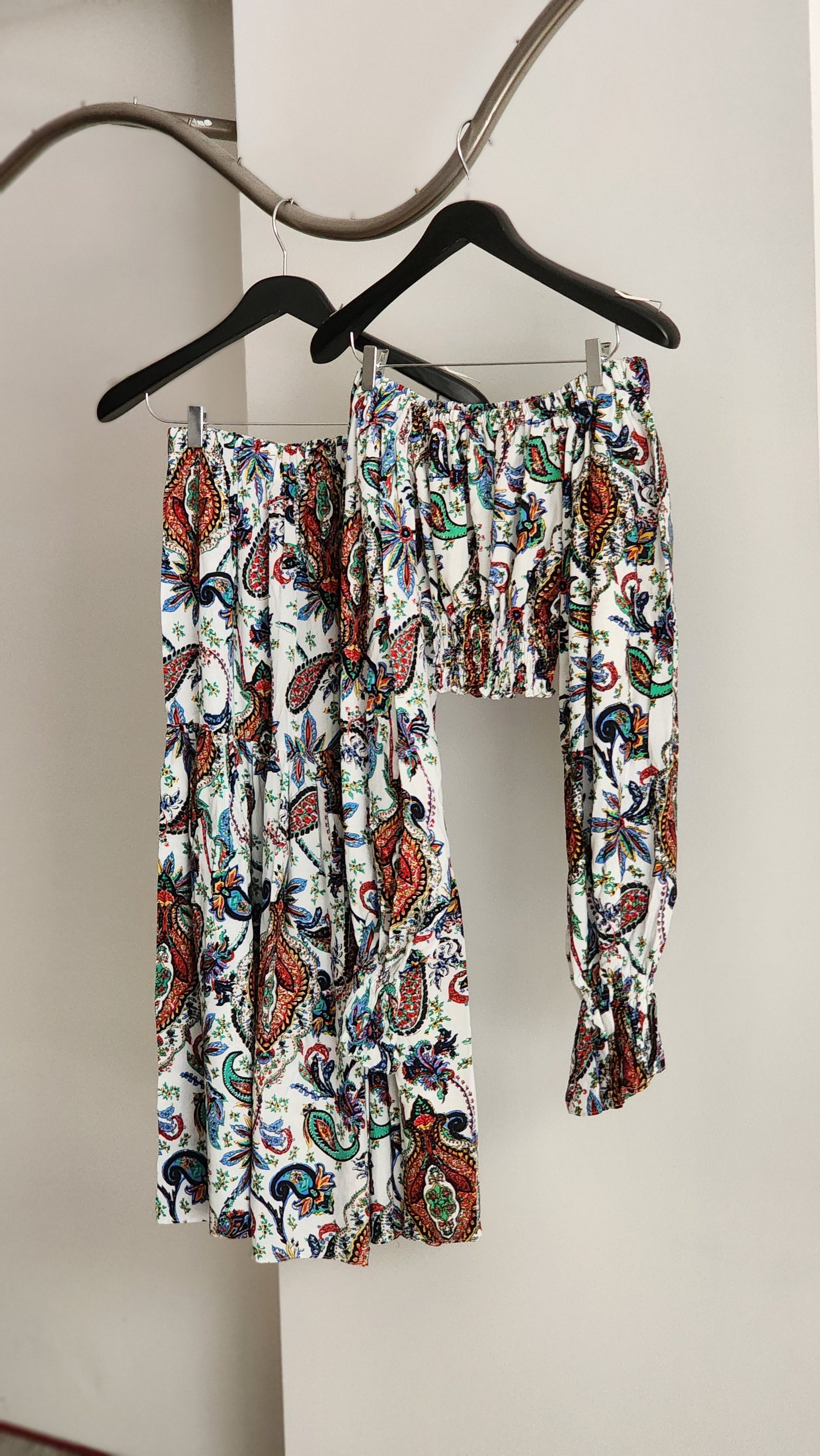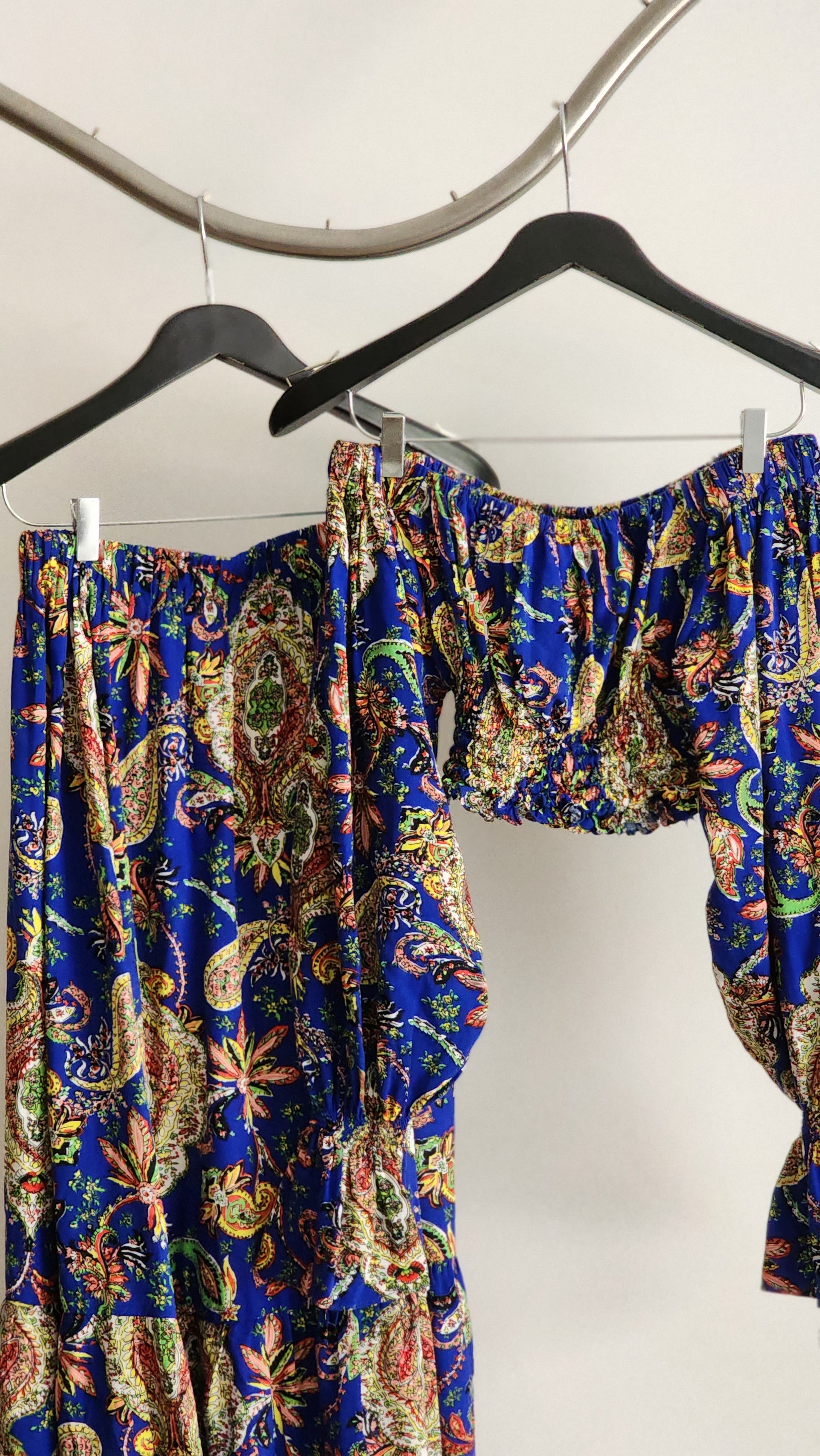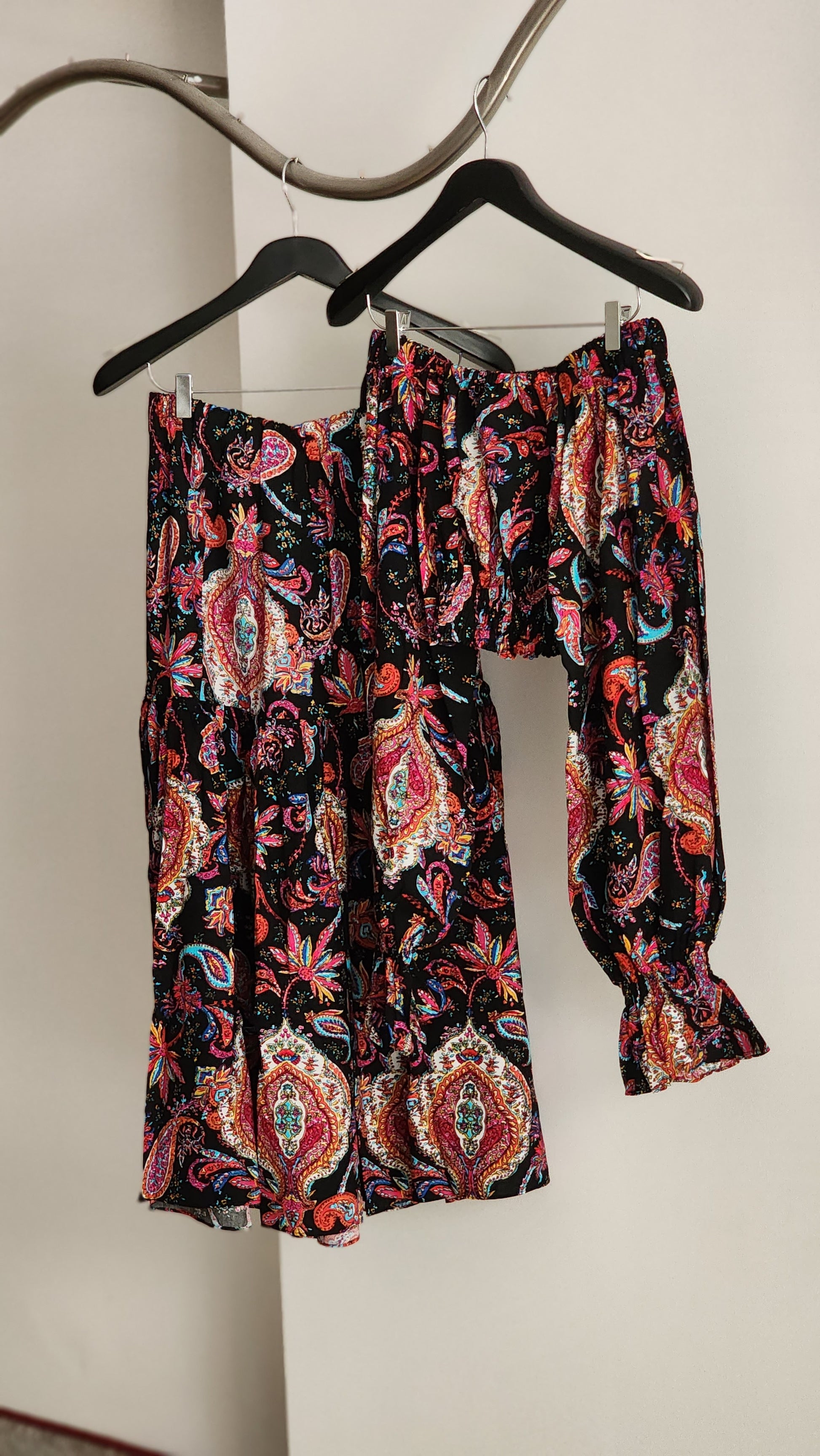 Isabella Set is an intricately detailed Spanish style set in several patterns and colors with gorgeous ruffles. This beautiful set will flatter and enhance any figure. Crafted from elastic bands across the shoulders and waist for a perfect form-fitting fit.