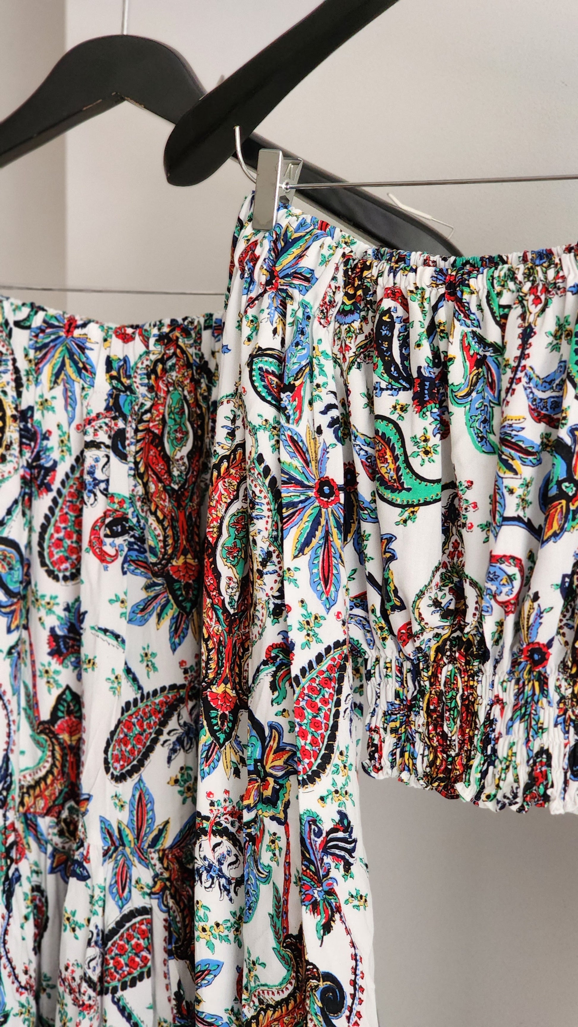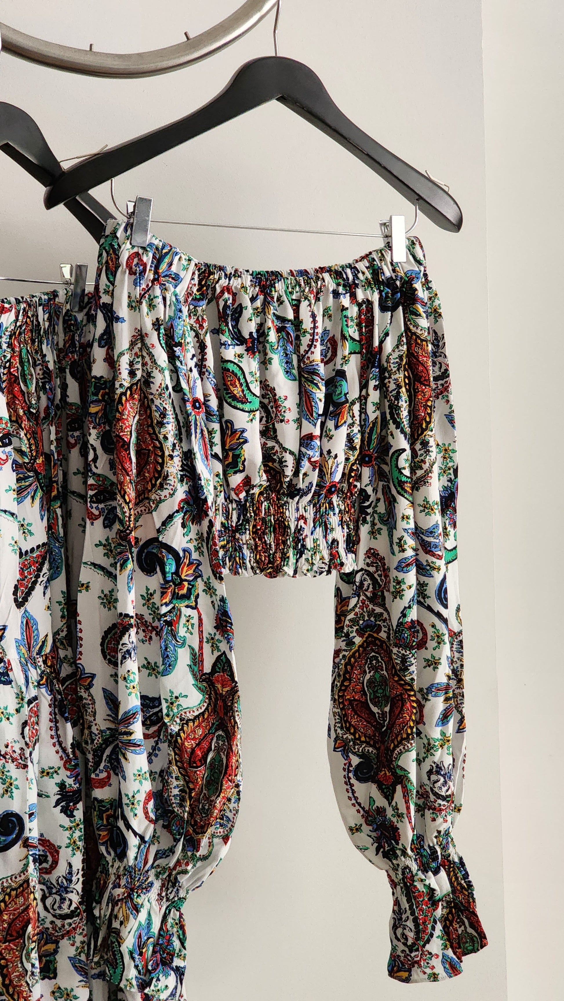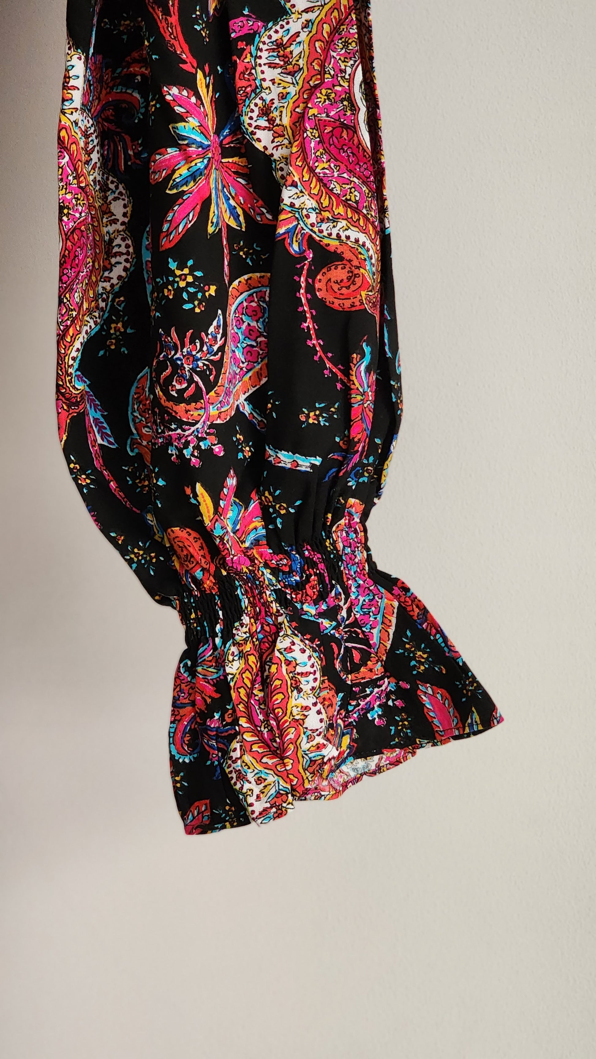 Isabella Set is an intricately detailed Spanish style set in several patterns and colors with gorgeous ruffles. This beautiful set will flatter and enhance any figure. Crafted from elastic bands across the shoulders and waist for a perfect form-fitting fit.